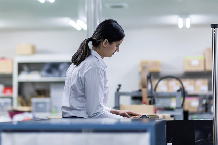 すべての工程が終了すると、検品へと進みます。お取引先企業様からの依頼書と照らし合わせながら、作業の漏れはないか、仕上がりに不十分なところはないかをくまなくチェック。万一、不合格の場合は再加工に戻される厳しい検査体制が、仕上がりのクオリティを支えています。